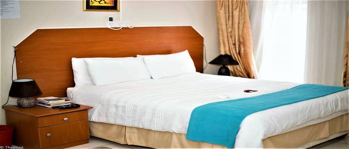 Accomodation includes a total of five(5) ensuite bedrooms, fully air conditioned, with telephone line extensions, tea/coffee stations, TV (selected channels) and secure parking area with security wall. The rooms comprise of three (3) twin bedrooms, one (1) double bedroom and one (1) queen bedroom.